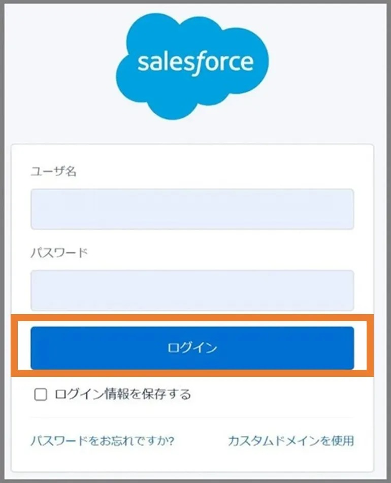 (1)パソコンのブラウザからユーザ名とパスワードを入力し、Salesforceにログインします。
